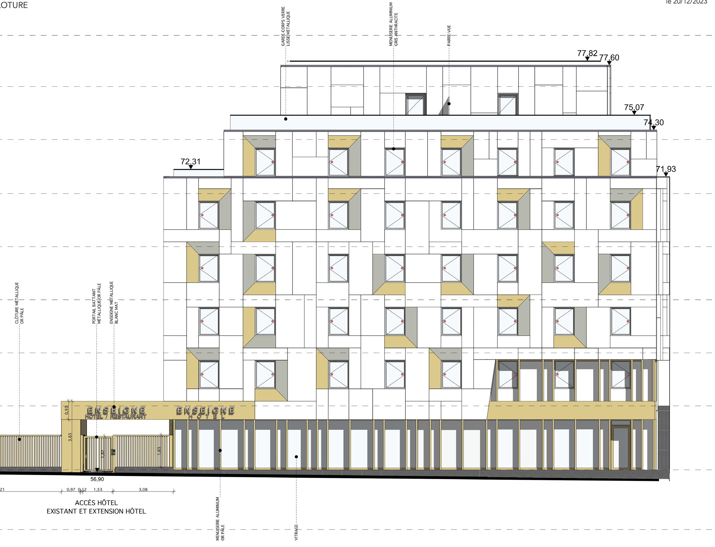 PHASES: EXE et Marché | PROGRAMME: Hôtel (2141 m2) - Isolant bio-sourcé | LOGICIELS: ArchiCAD et AutoCAD