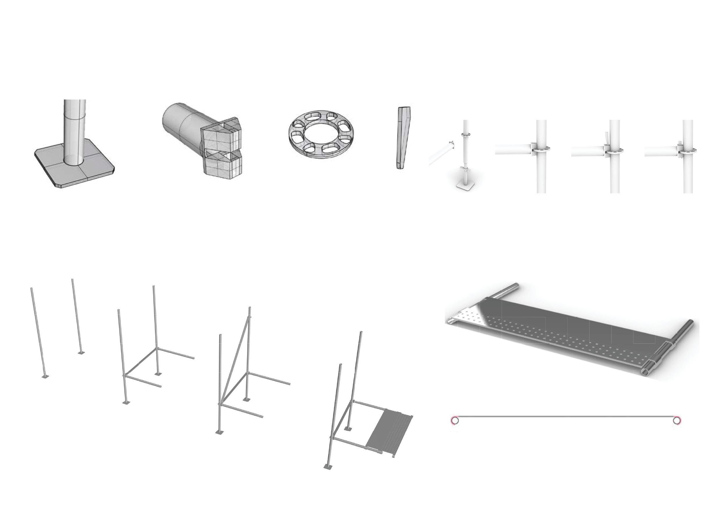 The structure is assembled using recycled scaffolding with a Ringlock Joinery System