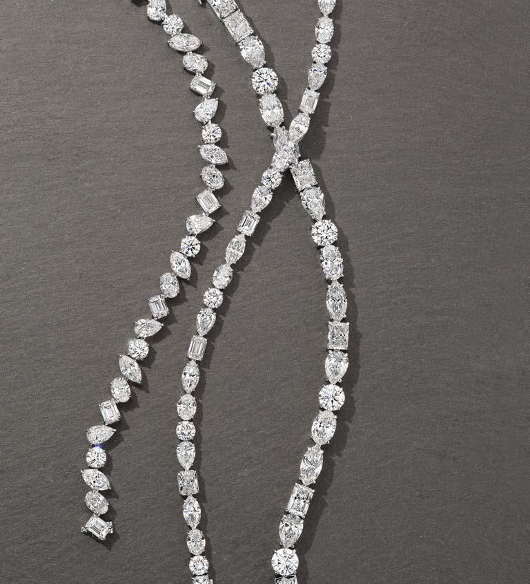 Graduated Oval Diamond Necklace, Platinum 66.80ct