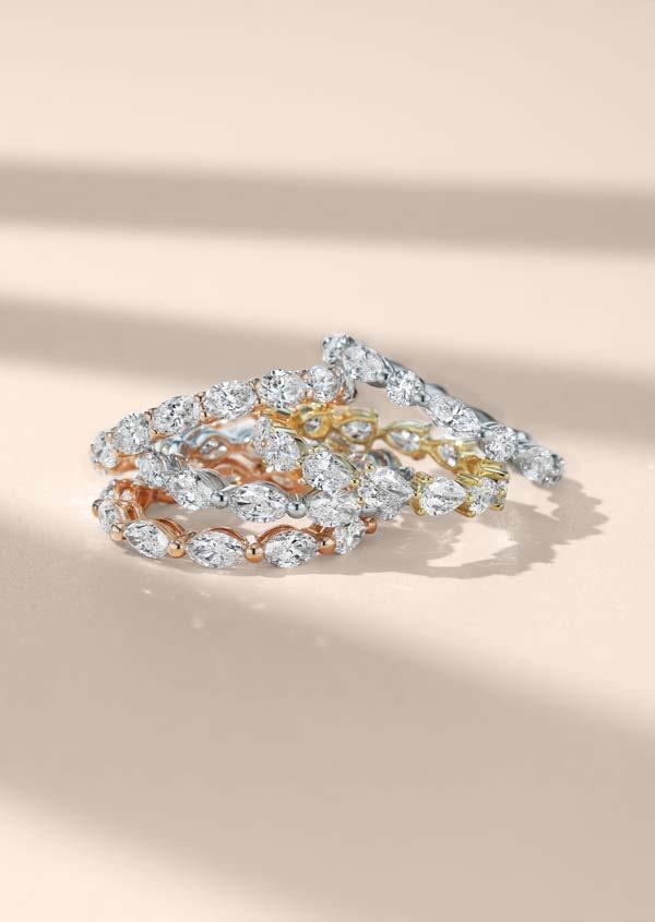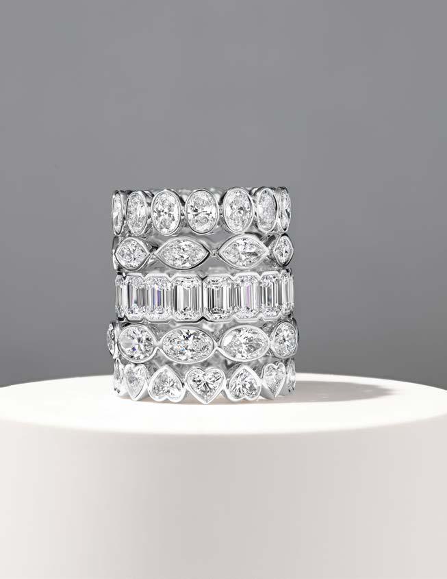 Bezel Eternity Bands: Oval, 18KW 3.64ct, Marquise, 18KW 2.20ct, Emerald, 18KW 6.31ct, Oval East/West, 18KW 4.06ct, Heart, 18KW 2.79ct