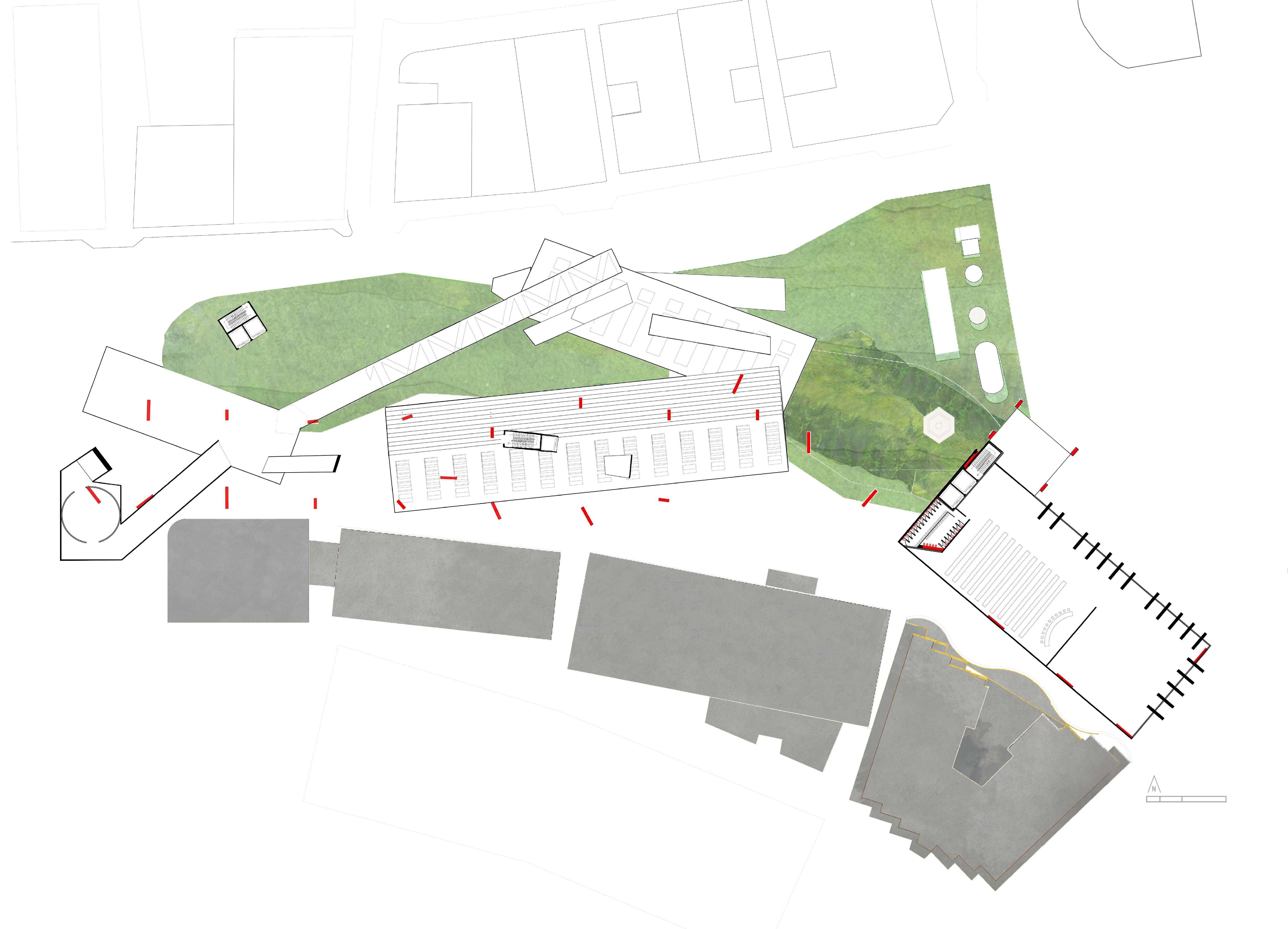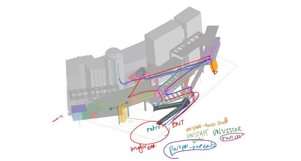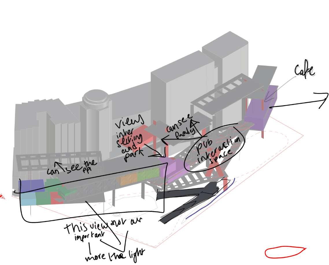 This was a preliminary to the current design as it showed the positions of the planes and why a certain view were important for reason like seeing into the facades or facing the brick mosque.