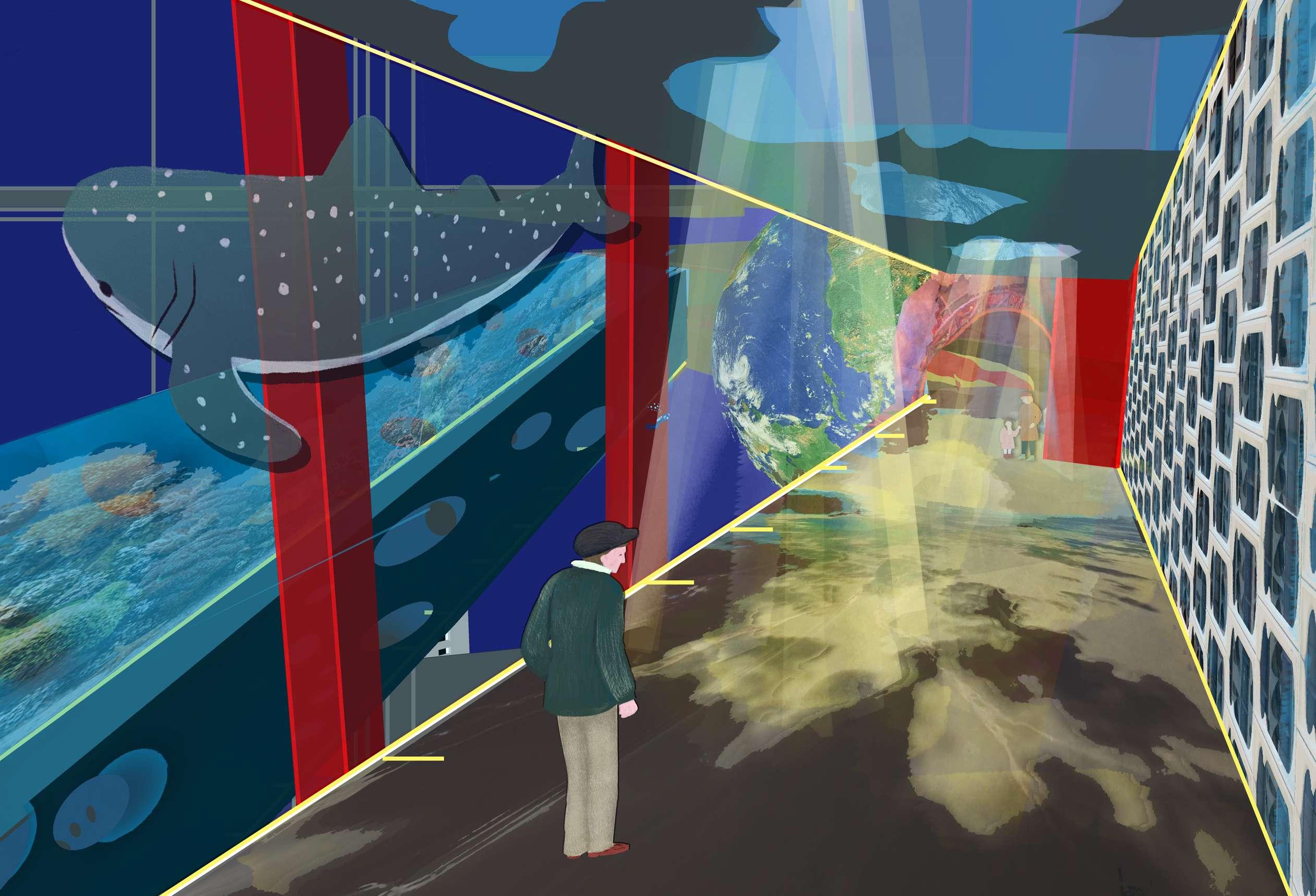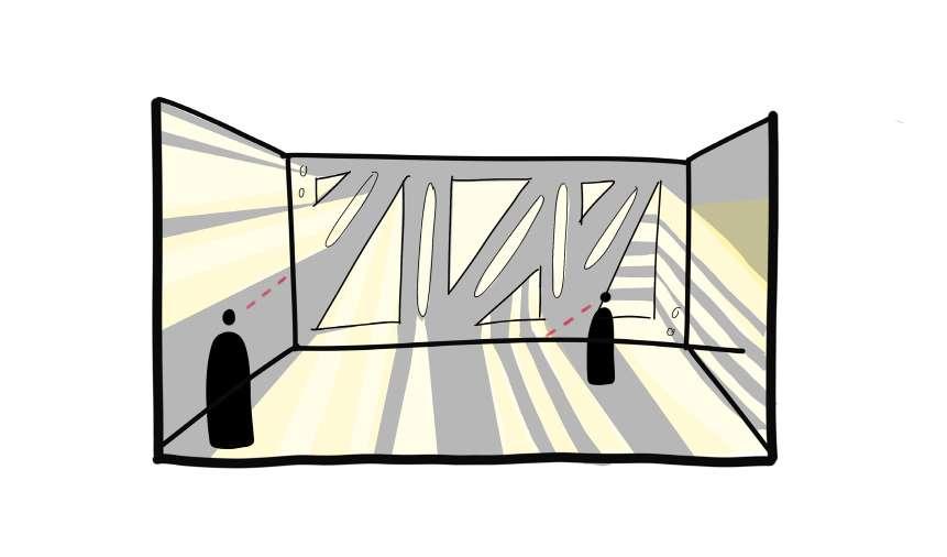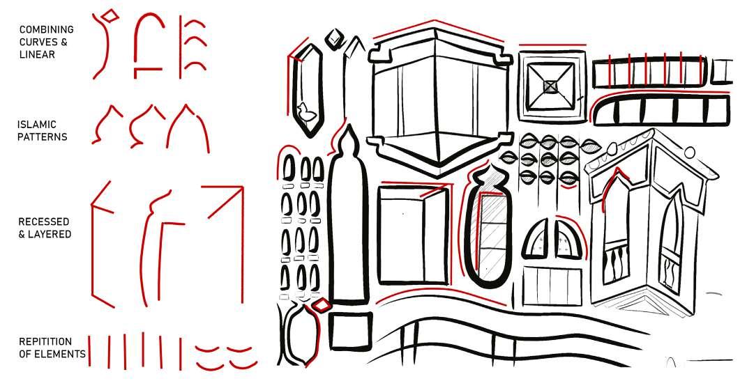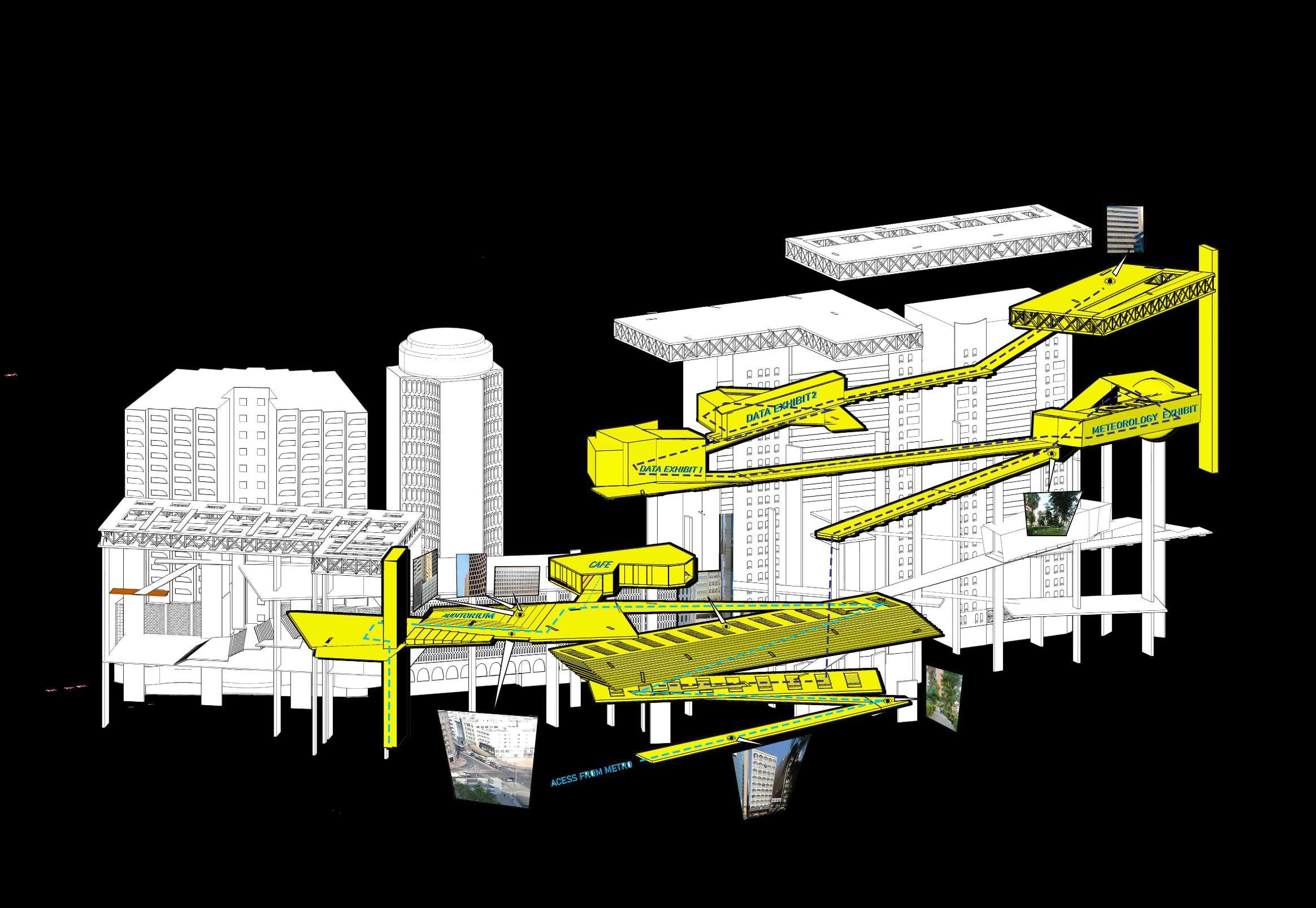 This was a preliminary to the current design as it showed the positions of the planes and why a certain view were important for reason like seeing into the facades or facing the brick mosque.