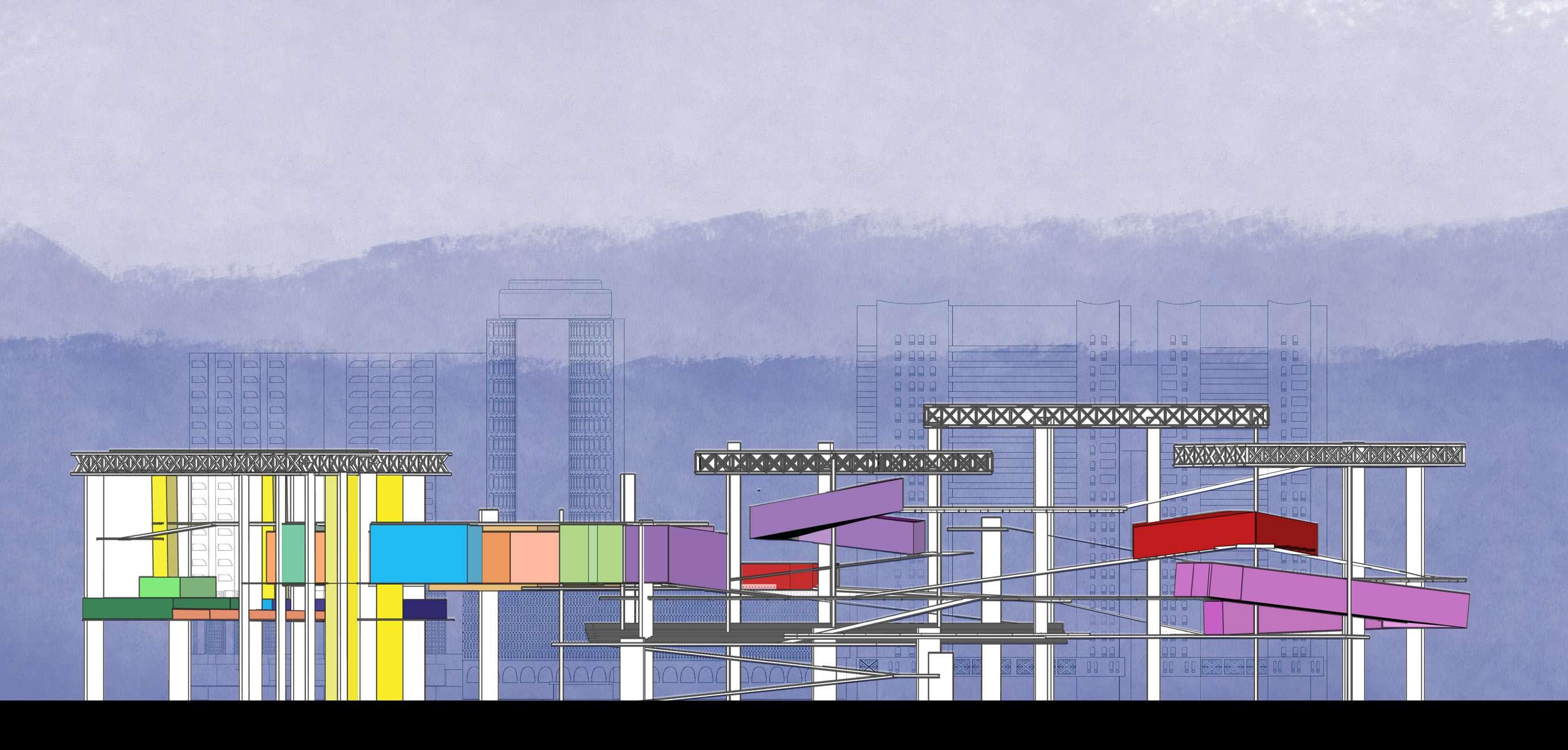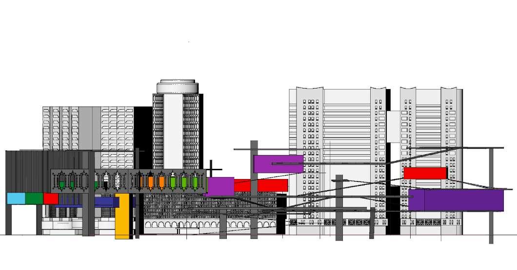 Renzo piano’s Centre inspired me ,in how the buildings structure was and was not hidden my buildings services shall run onto the structural elements similar to the building. The use of bright colors to highlight the services adds an element of play into the build.