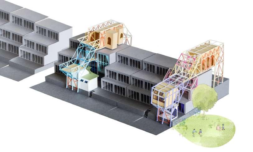 This project concept is about retrofitting community housing and adding to it without removing the original structure. I was inspired by the idea of the additive structure and for my final model the physicality of Michelle’s model will have an impact.
