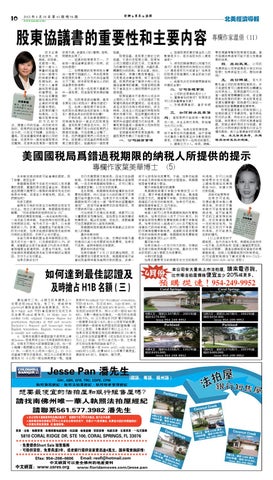 美国国税局为错过税期限的纳税人所提供的提示 专栏作家叶美华博士 (5) 未申报或缴纳税款可能会导致罚款,毁 了信誉,甚至坐牢 美国国税局对于未能支付税的人有很严 厉的处罚,严重的罪犯甚至会坐牢。要避免 这些问题只需要花一点点的时间来完成您的 税表并申报,或者至少申报延期。因此,我 们开始吧! 利息及罚款 逾期未交税的利息从交税期限日起至支 付日止,每日以复利计算。美国国税局网站 解释,“利率是联邦的短期利率加 3%”。 罚款的类型有两种,一为未能按时付税, 一为未能及时申报。未能按时付税的罚金是 交税期限日起,每月或不足一个月,以未缴 税款的 0.5% 计算。这种罚金不能超过 25% 的未付税款。如果您能提供国税局未能按时 付税的合理原因,您将不必支付罚金。 未能及时申报的罚金是申报期限日起, 每月或不足一个月,以未缴税款的 0.5% 计 算。这种罚金也是不能超过 25%的未付税款。 当两种罚金都适用时,此罚金可减免。如果 您能提供美国国税局未能及时申报的合理原 因,您亦不必支付罚金。 如果您无法支付
