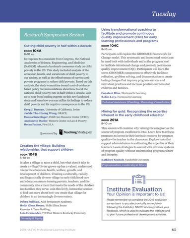 Your Opinion is Important to Us! Please remember to complete the 2019 evaluation survey (sent to you electronically immediately following the Institute). NAEYC sincerely values your feedback, which is used to evaluate the Institute and to plan future professional development activities.