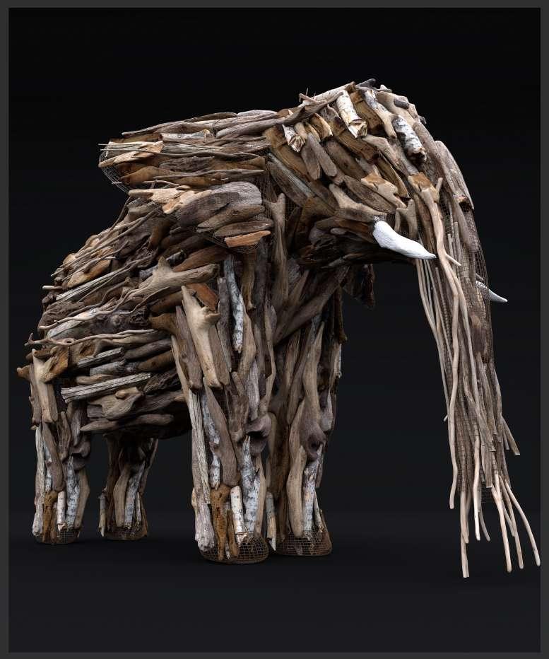 Wood sculptures are not something new for physical sculpture, but they might be something new in digital art sculpture By using various pieces of 3D wood found by a 3D scan process, I have creatively transformed them into elephant and big cat figure sculptures. I hope this week manages to bend wood to these two imaginations in a unique way These pieces talk for themselves but also the transformation stands for Tanzania’s national parks, places where we have large numbers of big cats and elephants. The general idea was to transform our local animals into digital arts