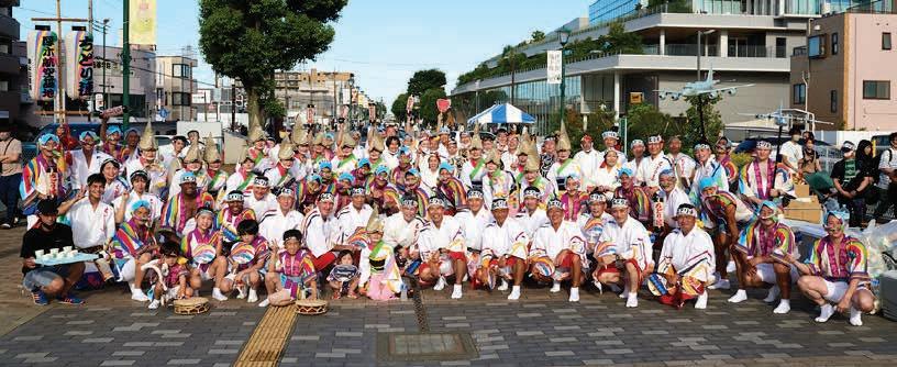 Capt. Manning Montagnet, Naval Air Facility (NAF) Atsugi commanding officer, along with other NAF Atsugi and Atsugi Japan Maritime Self Defense Force (JMSDF) leaders participate in Yamato City’s 46th annual Awa Odori Festival. During the event, participants paraded through the streets of Yamato with local Japanese citizens performing various traditional dances.