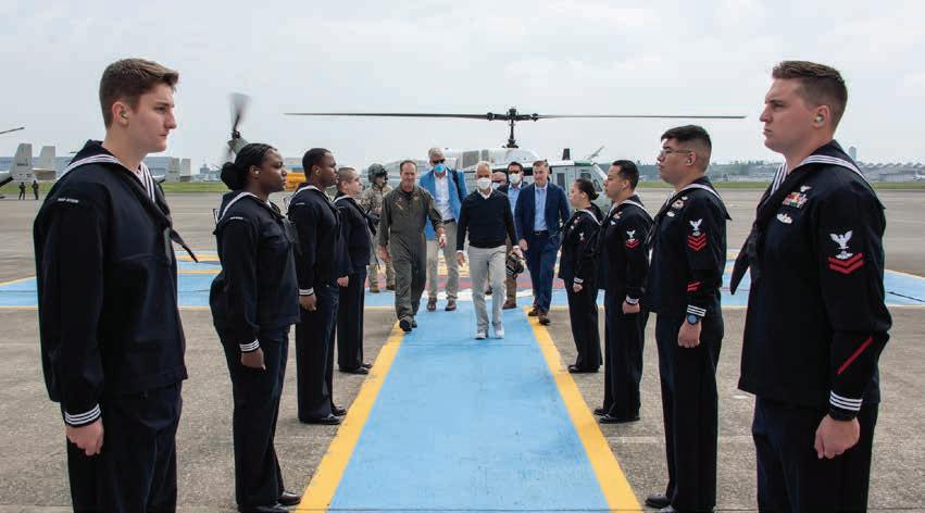 The Honorable Rahm Emanuel, the U.S. ambassador to Japan, arrives at Naval Air Facility Atsugi while en route, for an official visit, to the Nimitz-class aircraft carrier USS Abraham Lincoln (CVN-72) April 23, 2022. (U.S. Navy photos by MC2 Ange Olivier Clement)