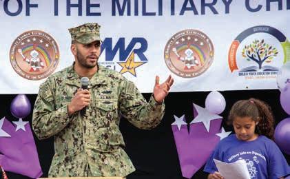 Cmdr. Zathan Baker, executive officer of Naval Air Facility (NAF) Atsugi, delivers remarks during a Month of the Military Child celebration at theShirley Lanham Elementary School onboard NAF Atsugi April 6, 2022. (U.S. Navy photos by MC2 Ange Olivier Clement)