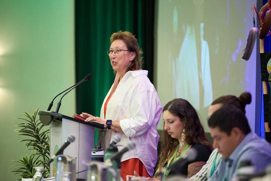 Le Forum des jeunes s’est conclu par un émouvant gala d’autonomisation des jeunes au cours duquel de jeunes autochtones ont présenté un défilé de mode pour célébrer la diversité de leurs identités et de leurs expériences avec style, expressivité et créativité La soirée s’est terminée par une soirée dansante animée par DJ Bear Witness.