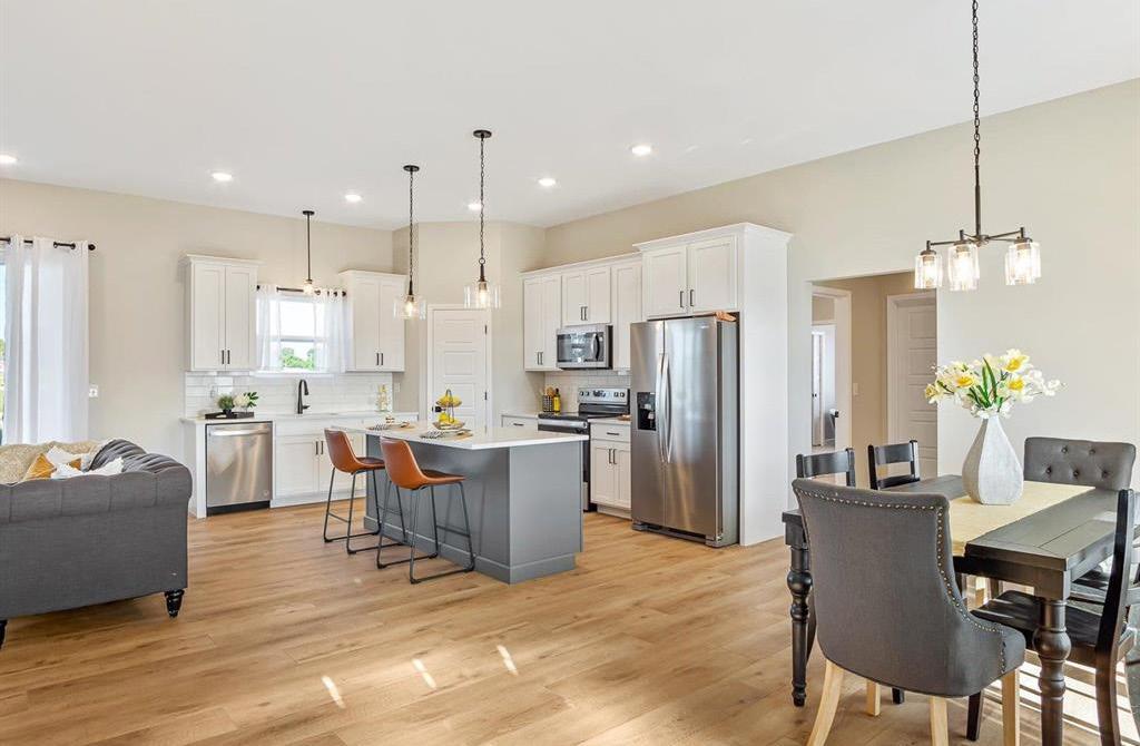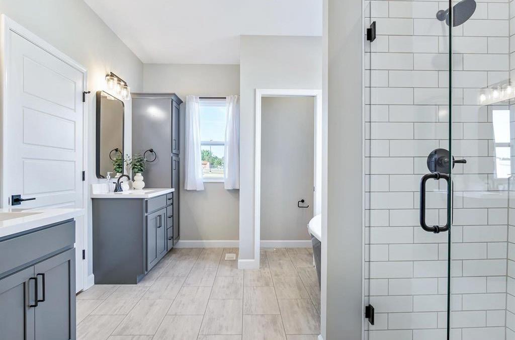 The Dakota is one of Quantum Homes Inc. newest floor plans! This contemporary ranch is a split bedroom plan with 3 bedrooms and 2 full baths. The great room has 10’ ceilings in the living room with gas fireplace featuring built ins, kitchen and breakfast room. There is a versatile dining room or private office for a work from home lifestyle with attractive barn doors just off the great room. Beautiful custom kitchen with appliances, pantry, large island, Quartz countertops , under and over cabinet lighting, subway tile backsplash. The bedrooms and office have 9’ceilings. The master bedroom features a master bath with free standing tub and separate shower, his and hers vanities, water closet, blue tooth fan and walk in closet. Luxury vinyl plank flooring that will impress you. Enjoy the outdoors with a covered front porch and a large covered patio. The unfinished basement has 9’ walls, bathroom rough in and an egress window for future expansion.