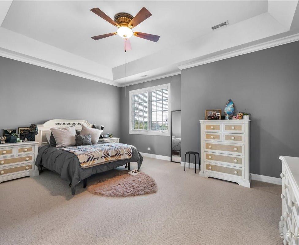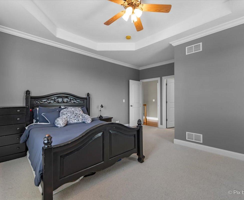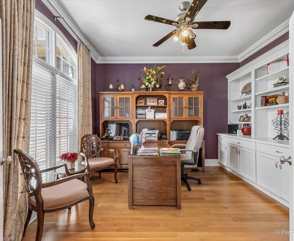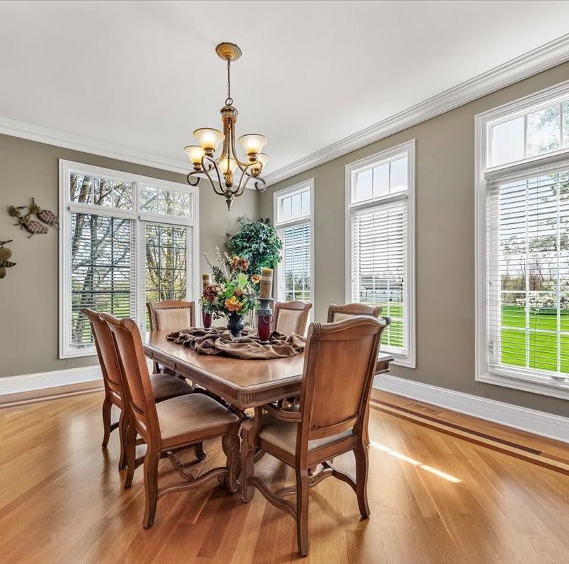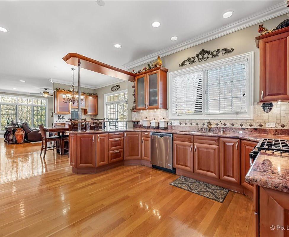Exceptional Custom Home on 1.35 Beautifully Landscaped Acres - Loaded with Premium Features! This extraordinary property offers luxuryliving inside and out, with timeless design, thoughtful upgrades, and meticulous attention to detail. From the grand two-story foyer with wrought ironrailings to the elegant crown molding, 10-foot ceilings, and hardwood floors throughout the main level, every inch reflects superior craftsmanship. Thechef's kitchen is a standout, featuring upscale cabinetry, granite countertops, a new stove and refrigerator, stainless steel appliances, a serving counterwith glass-front cabinets, a generous breakfast bar, and a sun-filled dining area that opens to a massive deck overlooking a serene backyard. Formalliving and dining rooms provide refined entertaining spaces, while the spacious family room invites relaxation with a stone-front fireplace, wet bar, andrecessed lighting. Enjoy two fireplaces throughout the home, including a dual-sided fireplace in the luxurious primary suite-complete with a largesitting room, three walk-in closets, a steam shower, and whirlpool tub. Each secondary bedroom features a deep walk-in closet and either a Jack-and-Jill or private en-suite bathroom. A first-floor den with French doors and custom-built-ins is perfect for a home office or library. Additional highlightsinclude a first-floor laundry room with granite counters and a utility sink, a complete, deep-pour basement pre-plumbed for a bathroom, an oversized 3-car heated garage with cedar walls and epoxy floors, additional driveway parking, zoned heating and air conditioning, and an in-ground sprinklersystem