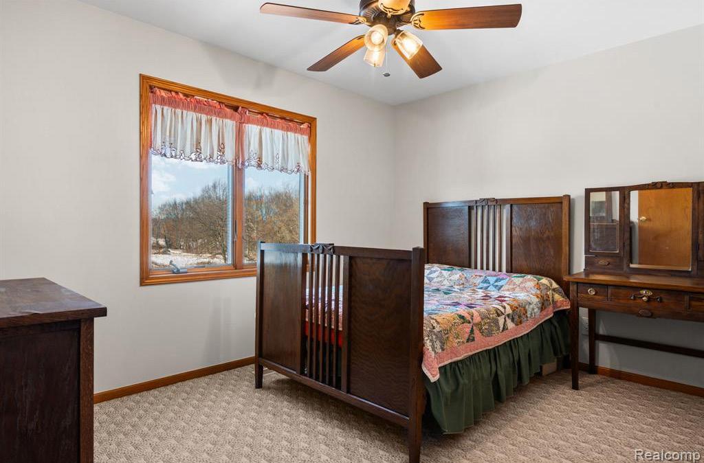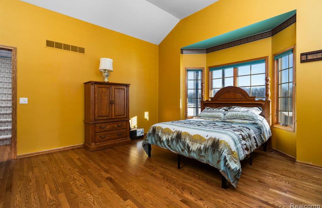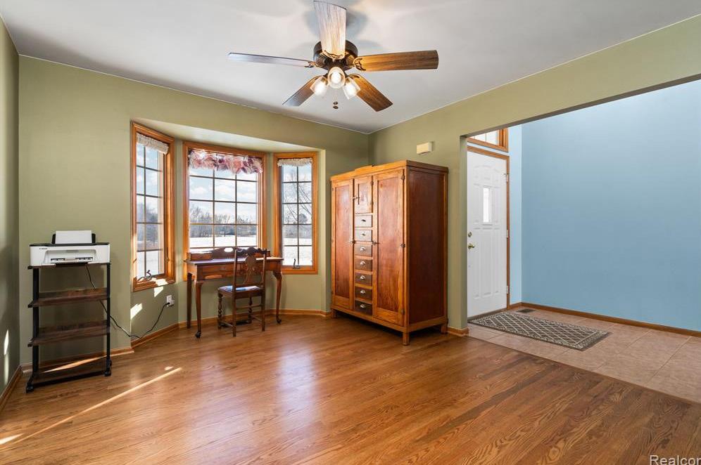 Beautiful country estate on 17+ acres, lovingly maintained by its original owner and updated throughout the years. This home welcomes you with a grand entry and soaring ceilings in the great room, featuring NEW hardwood floors and a gas fireplace with oak surround (convertible to wood burning). Enjoy an eat-in kitchen with Corian counters and sink, appliances, new garbage disposal, Anderson windows, and a door leading to the large Trex deck, perfect for outdoor cooking, enjoying wildlife and entertaining. Flexible main-level spaces include a formal dining room or sitting room with bay window and great views. The first-floor primary suite offers vaulted ceilings, WIC, and an ensuite with dual sinks, walk-in shower, and soaking tub. Main-floor laundry is available and ready to use (currently a drop zone), with real wood moldings and accordion blinds throughout. Upstairs provides 2-4 bedrooms depending on needs, including a large bonus room and an office easily converted back to a bedroom. The walkout basement features 9-ft ceilings, a full bath in use, and is ready to be finished. Outside you’ll find a 60x40 barn with concrete floors, steel roof, RV door, multiple access points, and 220-amp power. Additional features include alarm system and Ring doorbell, battery backup sump pump, furnace/A/C/water heater (2018), new roof (2024), Kinetico water filtration system, yard treated 3x/year for insects, 11 acres planted with hay for easy maintenance, handicap ramp and first-floor accessibility, fiber optic internet, and underground utilities. Survey and floorplans available. So much to love about this private, peaceful property.
