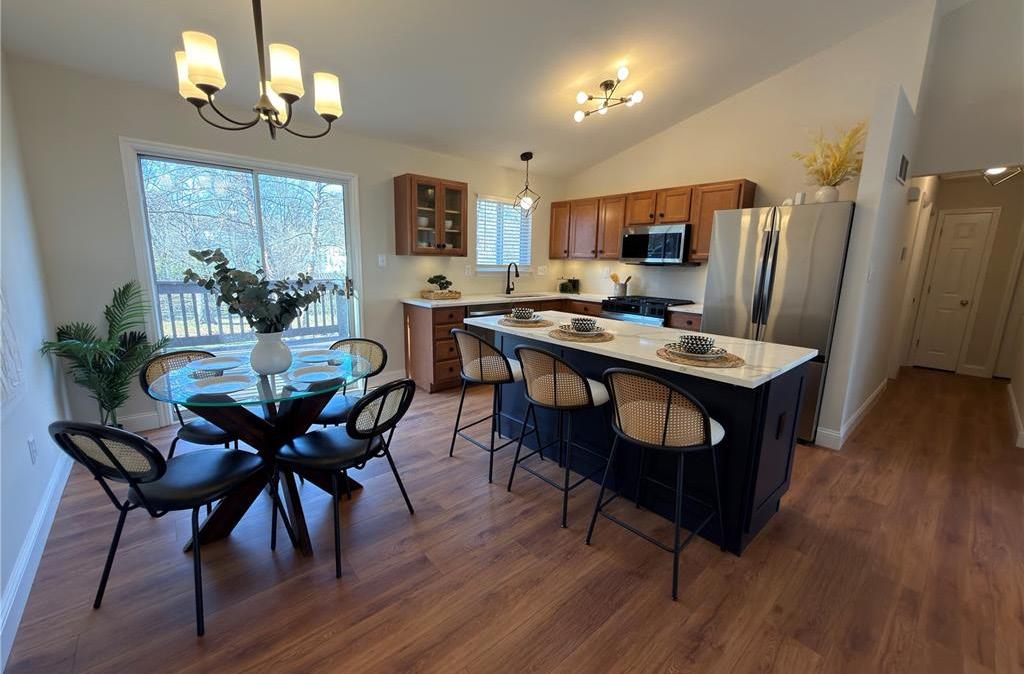 Have you been waiting for the right home to come along—one that feels updated, modern, and truly move-in ready? Your search may end right here on Genesta. This beautifully updated 4-bed, 3-bath home, built in 2006, delivers the rare combination of newer construction, thoughtful upgrades, and a location within the desirable Affton / Saint Louis County School District. From the moment you walk in, the home welcomes you with a spacious open floor plan and a vaulted great room—perfect for both relaxing nights in and hosting friends. A charming bay window brings in natural light, while the granite-hearth woodburning fireplace adds warmth and character. Enjoy the outdoors on the generous deck off the dining to extend your entertainment space. Brand new roof with 25-year architectural shingles and gutter guards—giving you confidence and peace of mind. You’ll appreciate the brand-new, water- and scratchresistant laminate flooring professionally installed by Ambassador Flooring in August 2025, flowing seamlessly across the main level and bedrooms, even the stairwell was meticulously done— paired with elegant 5 1/4 inch baseboards for a crisp, updated look. There’s no carpet anywhere, making the home ideal for anyone seeking style, durability, and low maintenance. New window treatments throughout the entire home adds the perfect finishing touch. The kitchen is designed to impress, featuring new quartz countertops, a newly installed island with seating, and all-new Samsung stainless-steel appliances, including a gas range and french door refrigerator, the perfect setup for everyday cooking or entertaining. All three main-level bedrooms offer vaulted ceilings with large planter shelves over the closets, and ceiling fans to create an airy, comfortable retreat. The bathrooms have been refreshed with modern finishes including Kohler toilets, designer vanities and lighting. The primary bathroom features shower with a seat. Downstairs, the finished lower level includes a large fourth bedroom that walks out to a covered patio perfect for guests, a home office, or multigenerational living. Also, a newly added third full bath should seal the deal. The oversized (19 feet wide by 25 ft deep) two-car garage gives ample storage space that is always needed and includes a new opener with keypad. A fenced backyard brings it all together, offering space for pets, play, and outdoor enjoyment. If you’ve been searching for a home that blends modern updates, on a quiet street, great schools, and St Louis County convenience’s, this one checks every box. Welcome home to Genesta—your next chapter starts here. Showings begin 12/1—don’t miss it.