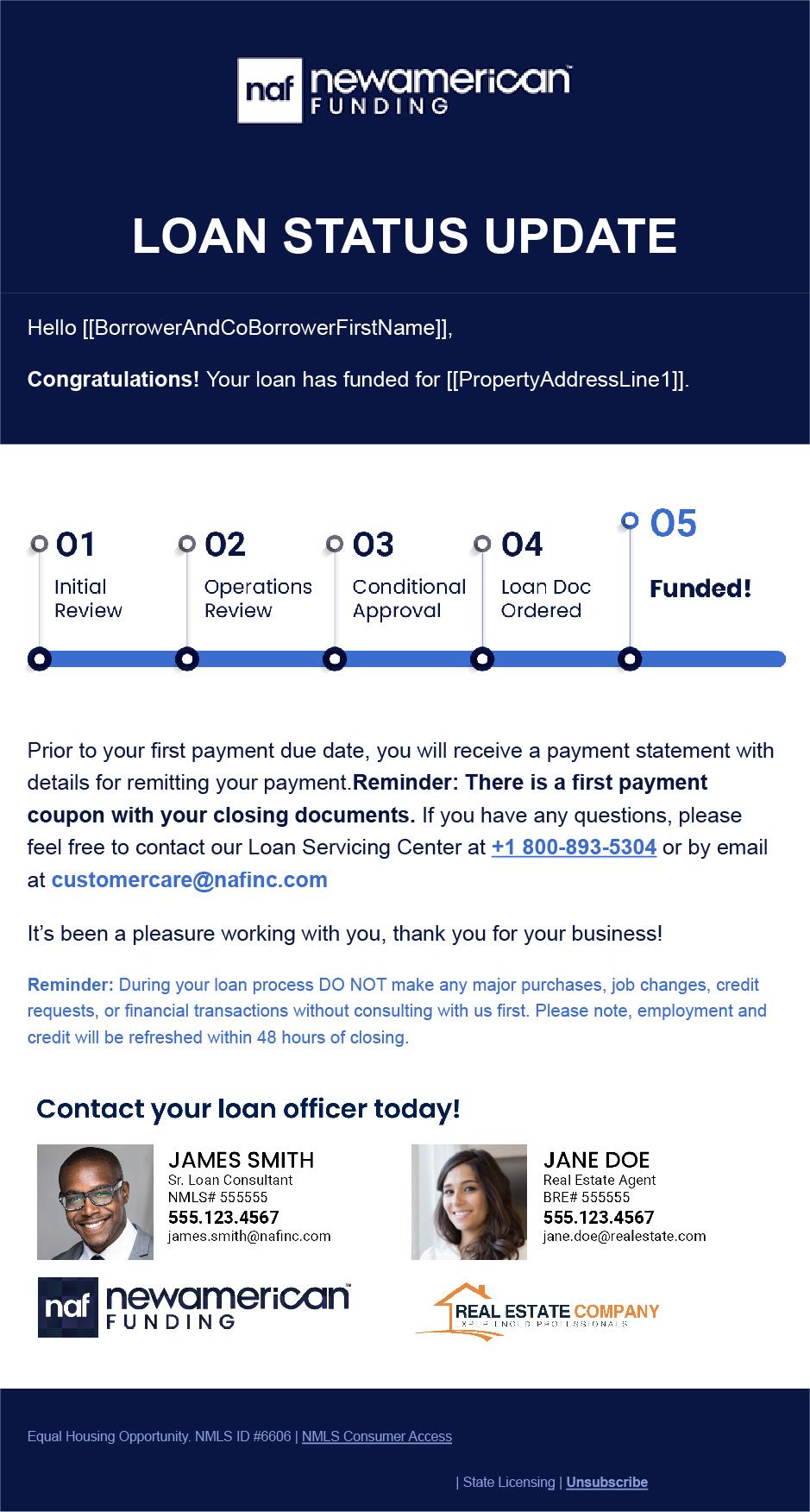 We keep you front and center before, during and after the loan closes. Milestone Updates keep your Buyers in the loop during the loan process, Drip E-mail Campaigns keep you top of mind after closing. Co-Branded Closing Cards are mailed to our mutual client with information on how to download Closing Documents and Payment App. Personalized co-branded Greeting Cards sent to clients on Birthdays and Loan Anniversaries. Our Agent Partners appear on the Mortgage Statement for the life of the loan.