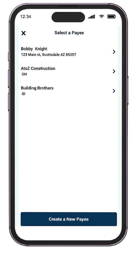 1. Select a Payee. A drop-down of contacts assigned to the loan will be available. If the payee is not listed, select Create New Payee and fill in the contact information for the new payee.