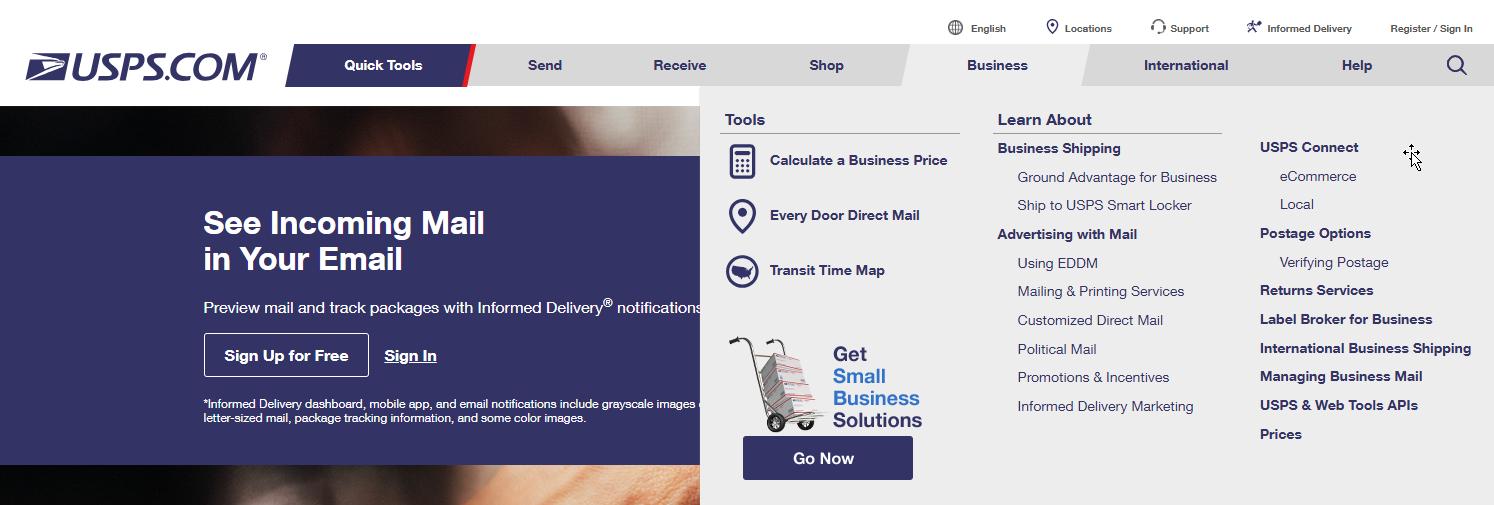 From the USPS® website, navigate to Business and select Every Door Direct Mail®.