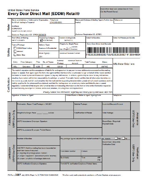 After payment is complete, USPS® will generate the required EDDM® paperwork, including a Mailing Statement and Facing Slips for each selected route.