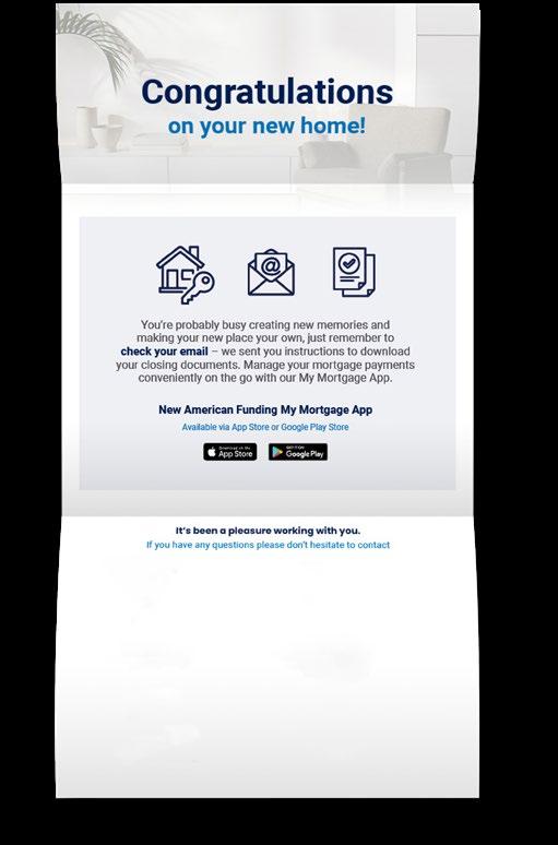 Maintain client relationships long after the deal is done with our Post-Close campaign. Keep your buyers in the loop with loan status updates and drip email campaigns that can be co-branded with partner real estate agents.