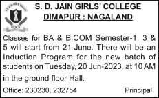 DIMAPUR, JUN 11 (NPN): Department of School Education (DoSE) has issued a clarification to the statement by Chang Students’ Conference after it pointed out that admission process for Class 11 in two government Hr. Secondary Schools in Tuensang were put on halt due to lack of classrooms and shortage of teachers.
