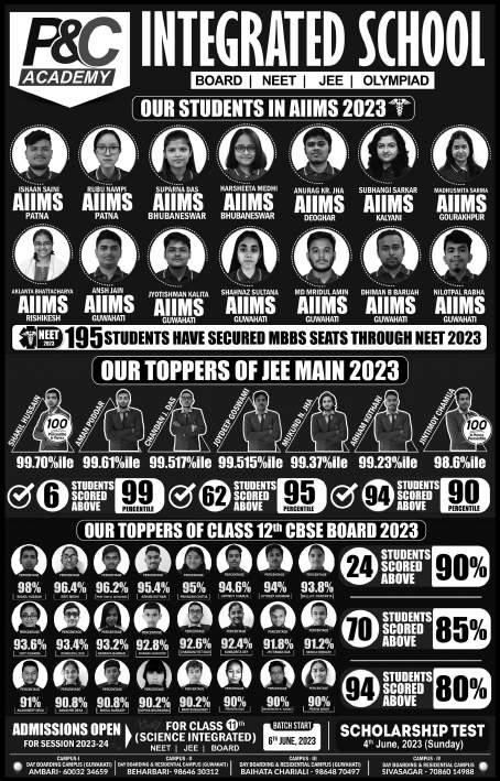 HSLC recorded pass percentage of 70.32% while in the HSSLC the overall percentage in Arts stream was 82.62%, Commerce stream 85.83% and Science stream 86.79%. In the HSLC Examination 2023, out of 24361 candidates, a total of 17130 candidates qualified the examination with a qualified percentage of 70.32%.