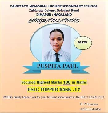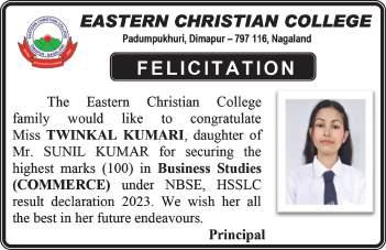 Speaking to Nagaland Post, Christy Paul Mathew, who topped HSLC exam with 99%, credited his success to teachers, parents and God. A student of Don Bosco Higher Secondary School, Dimapur, Mathew disclosed that he had spent two to four hours on studies every month, before gradually extending the study hours in the run-up to the exam. He said he believed that consistency, determination and hard work were the keys behind success. Besides studying, he enjoys