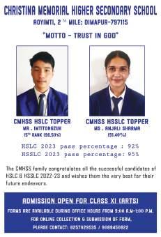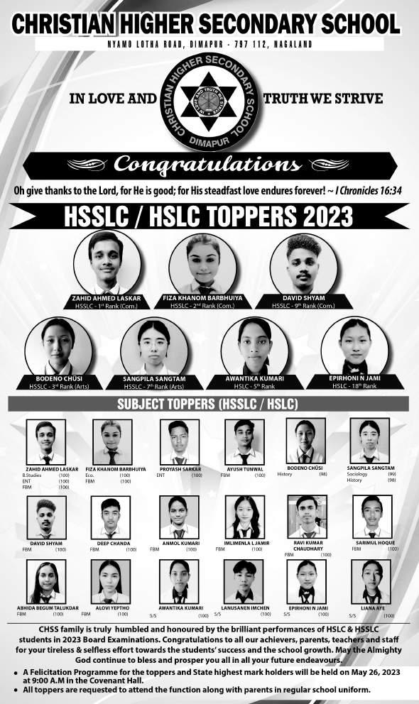 DIMAPUR/KOHIMA/ MOKOKCHUNG, MAY 24 (NPN): Toppers of HSLC and HSSLC examinations 2022 while attributing their success to teachers, parents and God on Wednesday, shared their success stories and future plans too.