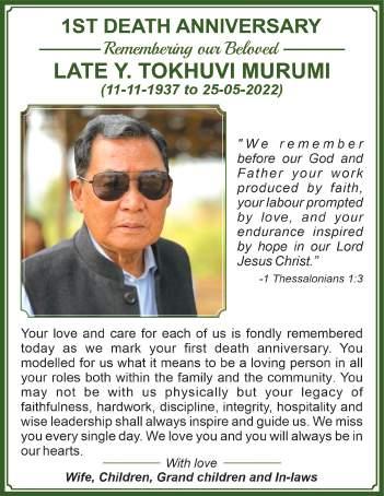 The family members of Late. Ghozheto Yepthomi would like to express our heartfelt gratitude to each and every individual, organizations, churches, relatives, friends, neighbours, well wishers, doctors and staff of Eden Hospital Dimapur who stood by us physically, financially and spiritually during his illness till his demise.