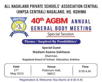 Teacher under Niuland meeting: All Nagaland School Teachers’ Association and teachers serving under Niuland district has convened a meeting on May 26 at 2 pm at Government Higher Secondary School, Niuland on the formation of ANSTA Unit, Niuland district. All teahers under Niuland district have been requested to be present at the meeting.