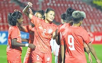 the Indian defence wide, a move Dennerby soon countered by bringing on speedy full-back Ranjana Chanu in place of Manisa Panna.