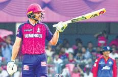 as Sanju Samson fell for a four-ball duck, holing out to long-on off Kuldeep, while Riyan Parag, playing in his 50th IPL game, completely missed a slower delivery from Rovman Powell to see his stumps in disarray. But Buttler marched forward to get his fifty in 31 balls by pulling Axar over cow corner for six. He then broke a spell of 20 boundary-less balls with backto-back fours off Mukesh. Hetmyer began giving finishing touches with loft and drive off Powell for six and four respectively.