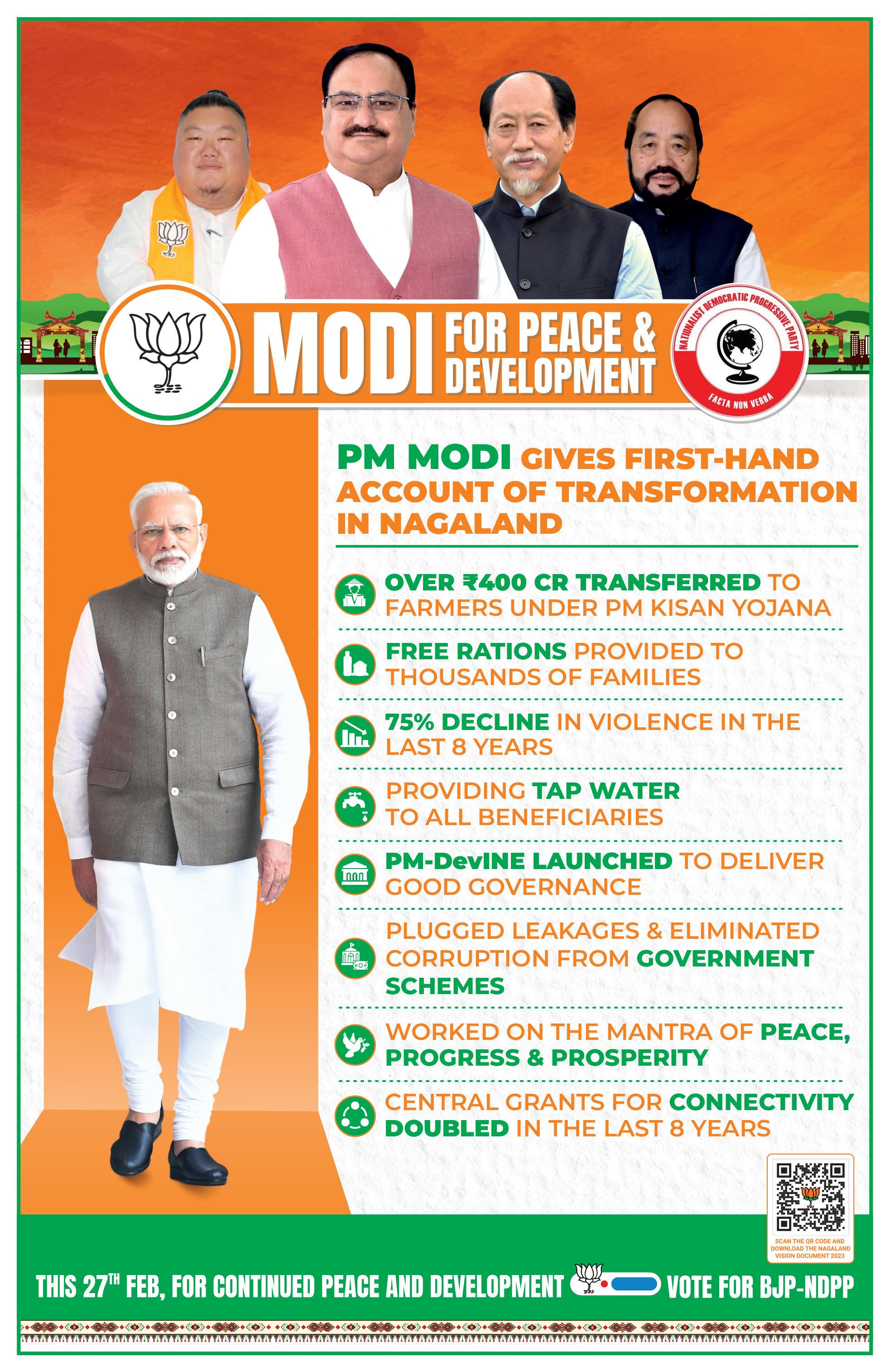 (NPN): P rime Minister Narendra Modi maintained that the BJP was focussed on three ‘Ps’ mantra for Nagaland-- Peace, Progress and Prosperity and most importantly, assured that strict action will be taken against those engaged in extortion activities in Nagaland.