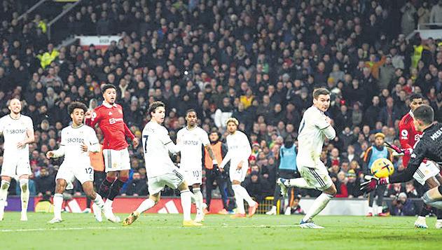 GREATER MANCHESTER, FEB 9 (AGENCIES): Marcus Rashford and Jadon Sancho combined to deny managerless Leeds a rare Old Trafford victory as Manchester United came back from two goals down to snatch a point from a thrilling Roses clash, reports BBC Sports. The hosts looked finished when Raphael Varane turned Crysencio Summerville’s cutback into his own net to put Leeds two ahead after Wilfried Gnonto had given them a first-minute lead.
