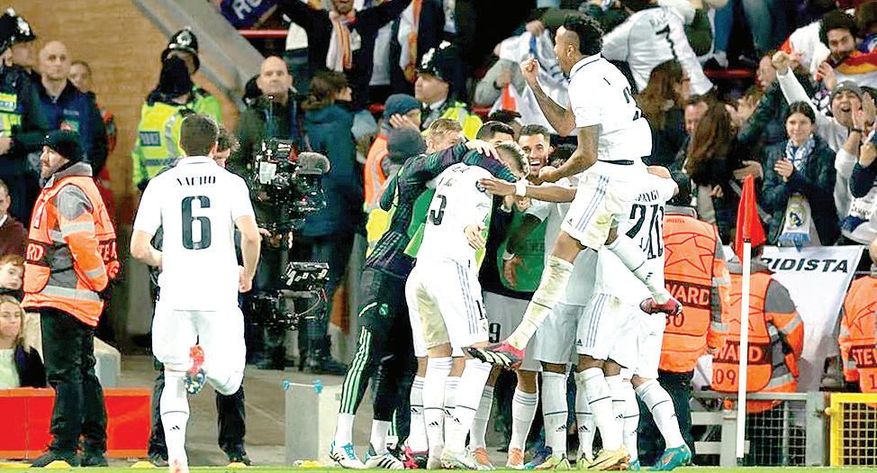 Real Madrid produced a stunning comeback from two goals down to earn a devastating 5-2 victory at a shell-shocked Liverpool in the first leg of their Champions League last-16 tie on Tuesday.