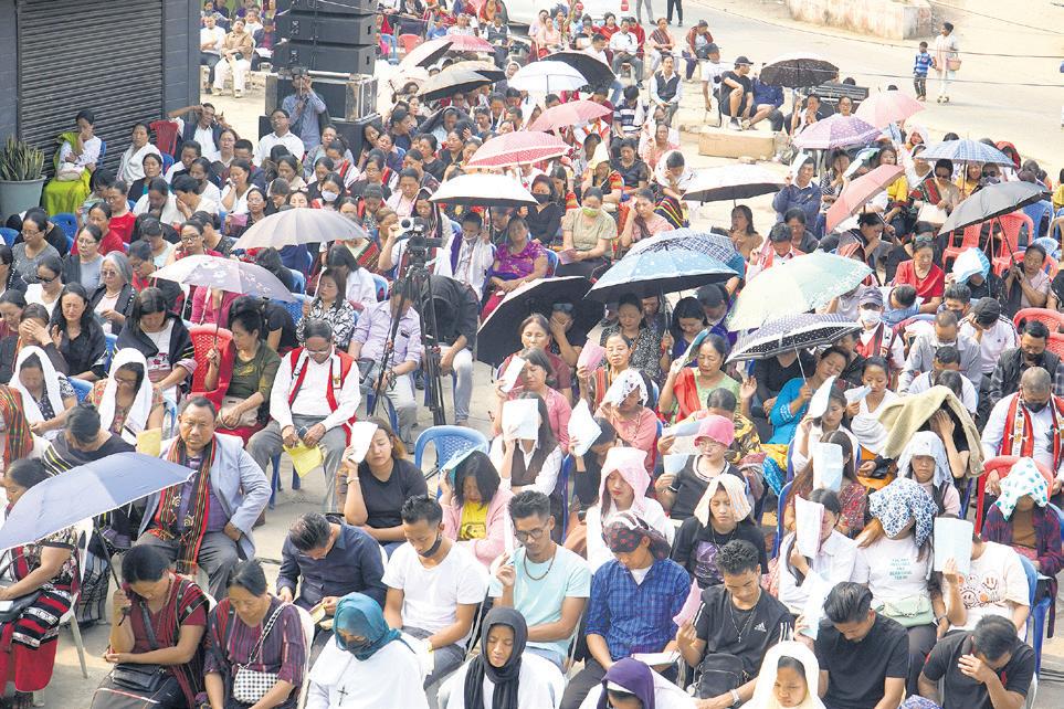 Christians from all denominations in Dimapur, participated at a Prayer Rally titled “Heal Our Land” organised by Christian Forum Dimapur (CFD), Nagaland Joint Christian Forum (NJCF) including Nagaland Baptist Church Council (NBCC) at Naga Shopping Arcade here Sunday afternoon.