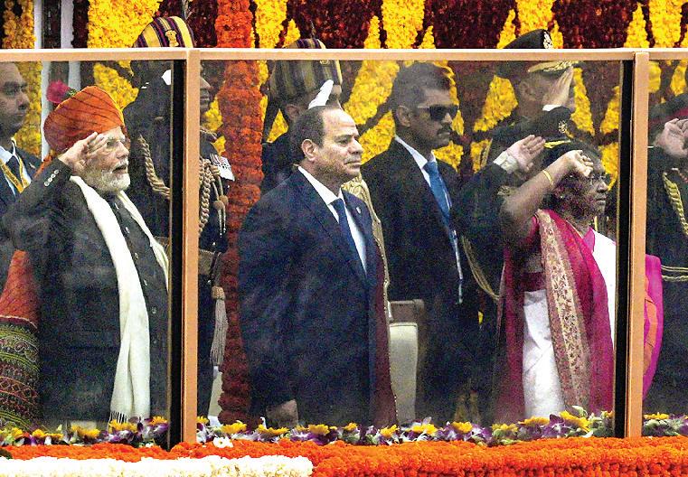 Egypt’s President Abdel Fattah al-Sisi was the chief guest at the ceremonial event. A combined band and marching contingent of the Egyptian Armed Forces also took part in the parade that started around 10:30 am and ended close to noon after a fly-past.