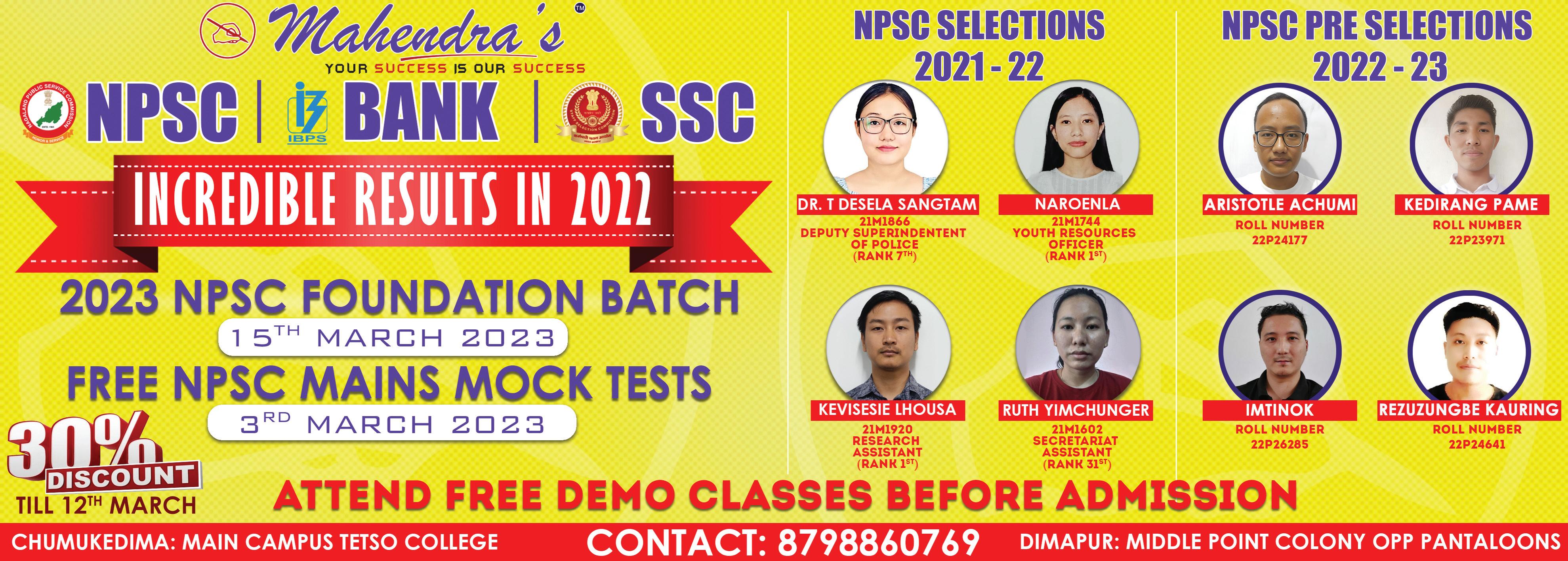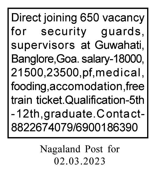 Seminar on career options: Royal Global School (RGS) Gauwhati will be hosting a seminar on March 4 at auditorium of Christian English School, for parents and students of Dimapur willing to know about various career options and changes in the education system due to New Education Policy 202. A press release by Target Media, stated that the seminar would be conducted by speakers, principal, RGS, Sanjay Tiwari and Keshav Agarwal from Delhi. The seminar will feature two sessions from 12:30-1:30 pm and 1:30-2:30 pm, covering range of topics, such as career counseling, memory techniques, and academic leadership.