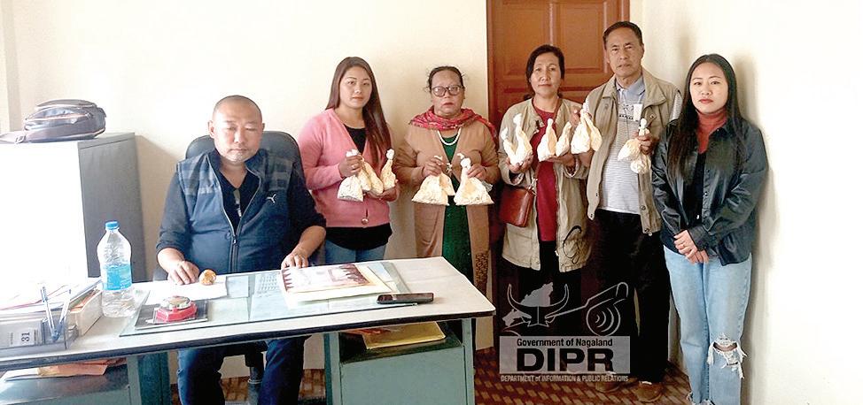DIMAPUR: District Horticulture Officer (DHO) Tuensang, Tiakaba Longchar, distributed oyster mushroom spawn to beneficiaries at his office chamber on