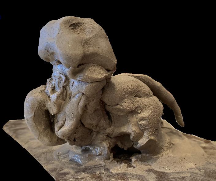 E started to shape the entire chunk of clay, using both of her hands into a sculpture of a lion.