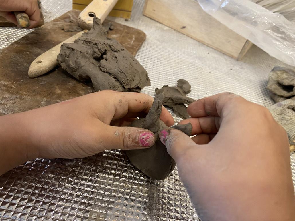 The second day of exploration was much different. Those who had not touched clay before, carefully and slowly started touching it, even if with just one finger. Others began to experiment with rolling, cutting and making shapes and creating objects.