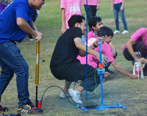 AGAINST THE AIR. Darren Avestruz, 31, from Batch Zephyrus, towers over his opponent during