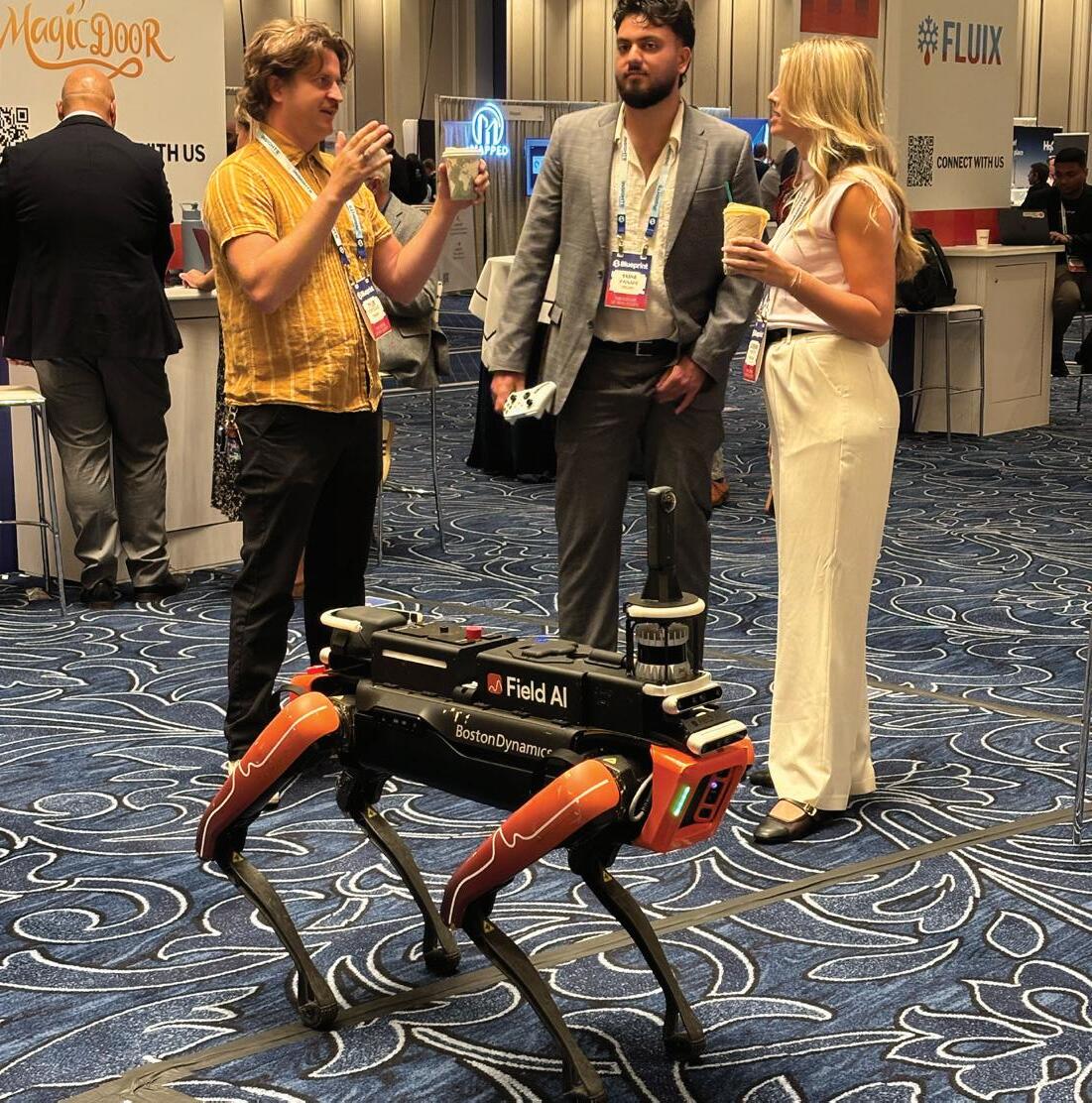 • New signals are arriving: From mobile devices to LiDAR and image recognition, we’re enriching footfall, usage, and built-form context. At Blueprint (Las Vegas, Sep 2025) I watched Field AI run a Boston Dynamics unit to autonomously scan the show floor - robotic sensing moving from the lab to the job site, with clear applications for inspections and as-builts. (See photo below.)