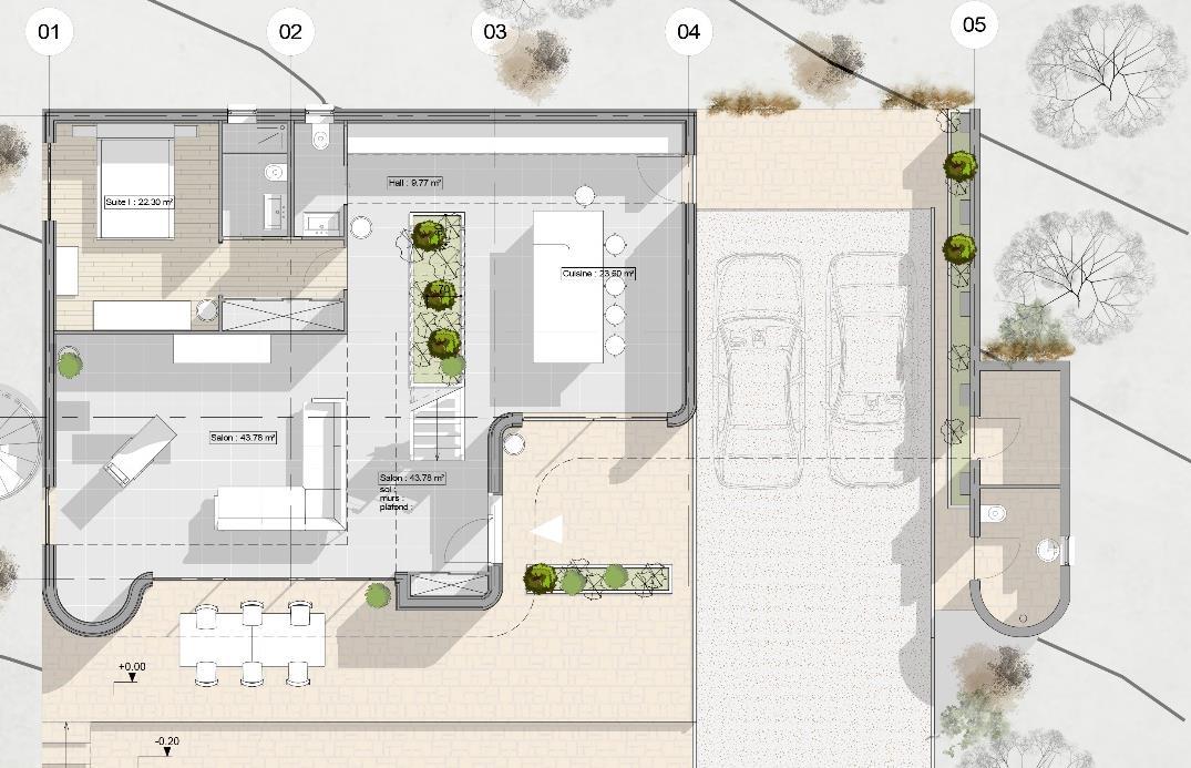 This built implantation, allows an important preservation of the existing vegetation of the site The particular topography of the site is an asset. The project tends to enhance it and include it in the life of the district by adapting it as much as possible to the various roads that border it