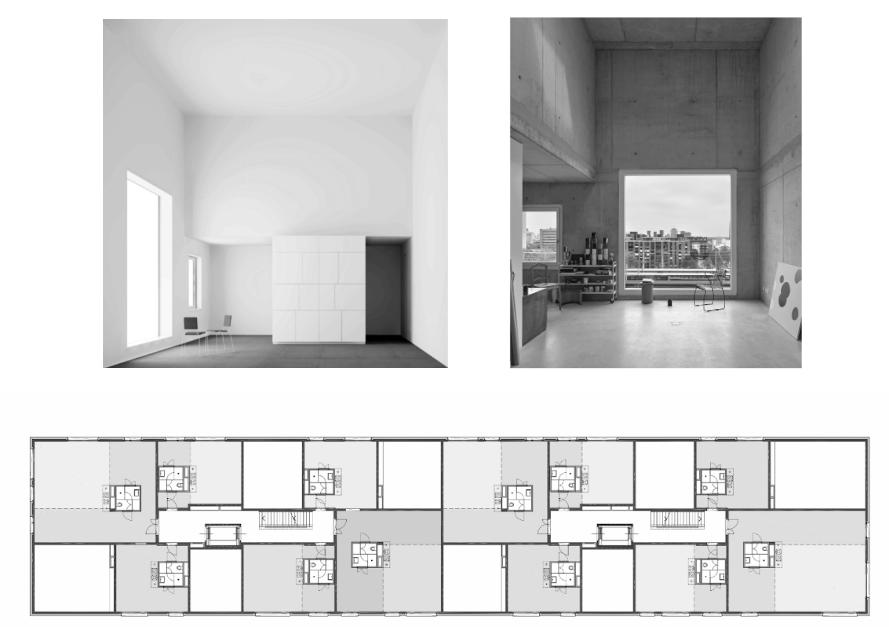 Dlatego też ważne jest ustalenie granicy między tym, co architektura może prognozować, a tym, co z drugiej strony należy pozostawić mieszkańcom. Bardziej odpowiednie będzie przewidywanie nowych archetypów mieszkania i próba wyjścia poza znane rozwiązania, badając w szczególności możliwość wstawienia przestrzeni wspólnych i różnych modeli własności, aby przełamać schemat standardowego mieszkania rodzinnego.
