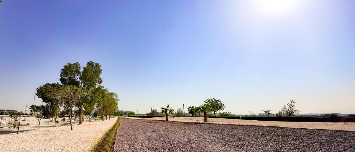 To boost both aesthetics and sustainability, underperforming plants beneath the Conocarpus trees in District One’s bicycle jogging track area have been replaced with decorative gravel.