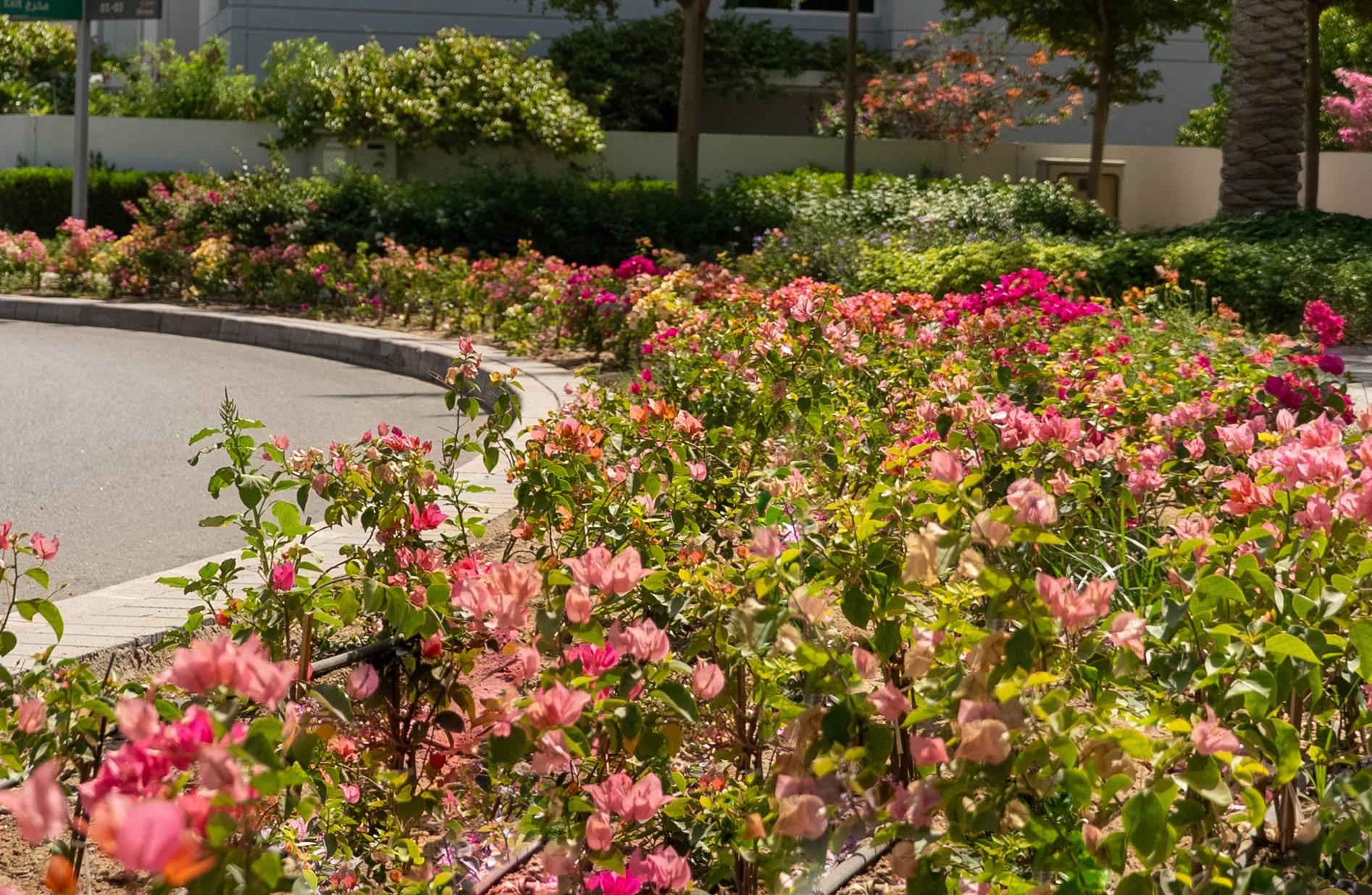 Mudon’s Entrance 1 has undergone a stunning landscaping upgrade, bringing fresh colour and warmth to the community’s gateway. Covering a spacious 2,500 square meters, the area was thoughtfully planted with a diverse mix of plants including 3,000 flowering glorybowers, 7,500 bougainvillea and 2,000 yellow oleander varieties.