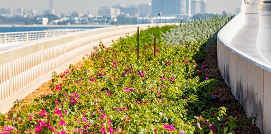 Handpicked by our landscaping experts for their ability to bloom in the UAE climate and supported by smart irrigation, these species contribute to the harmonious blend of greenery and structure for motorists and residents navigating the neighbourhood.