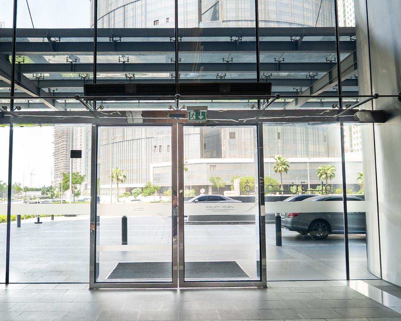In order to improve energy efficiency and indoor air quality, air curtains were installed at the lobby entrance to maintain a stable indoor temperature by minimising the ingress of hot or cold air, dust and insects, thereby enhancing comfort for all who enter the building.