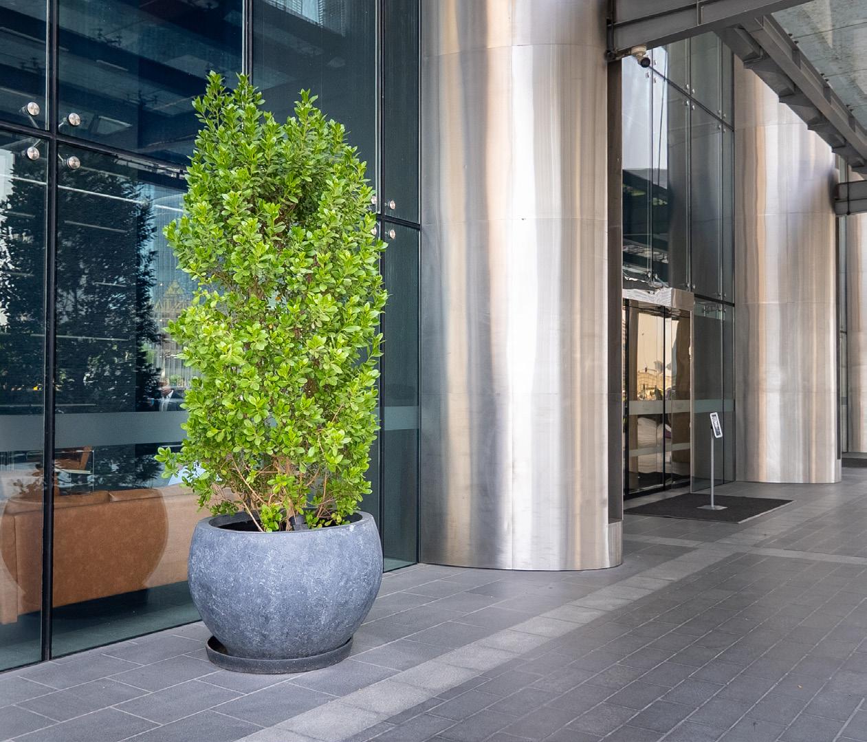 The lush greenery and graceful presence of the plants soften architectural lines and add warmth, making the entrance more inviting and visually appealing, elevating the overall experience of the community’s main entryway.